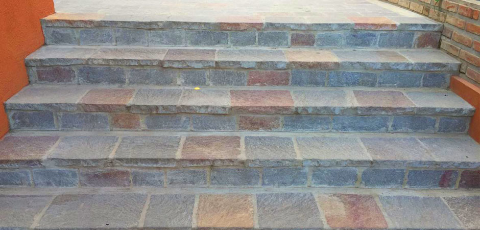 5) Se comienza la colocación desde la parte inferior de la pared hacia arriba eligiendo como primeras opciones las lajas de mayor espesor ya que ellas darán el plomo de la pared.
